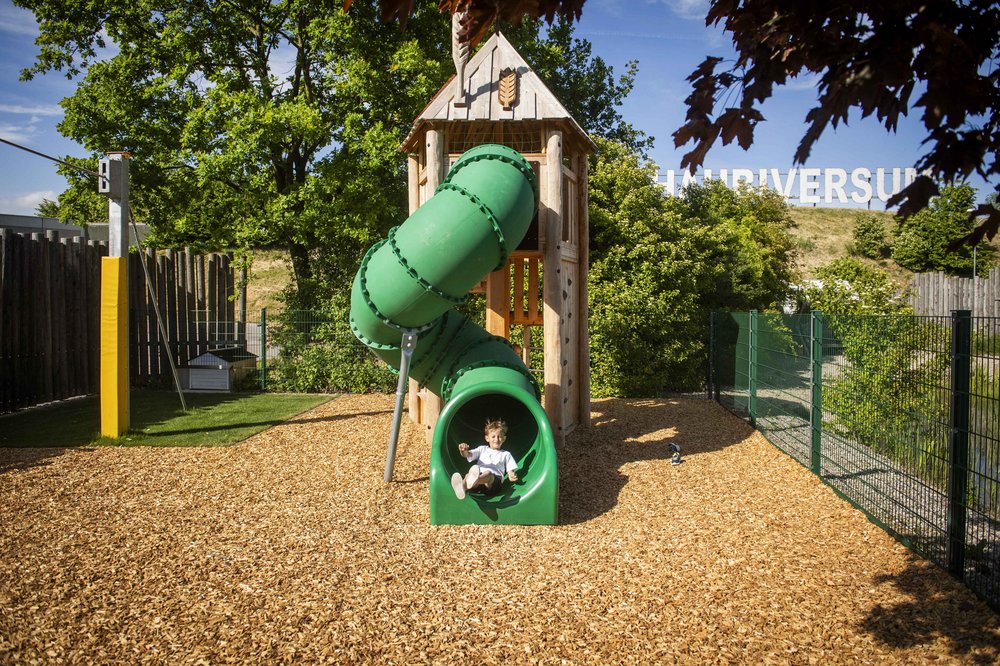 Der Außenspielplatz ist für Kinder bis max. 14 Jahre. Eltern haften für ihre Kinder.