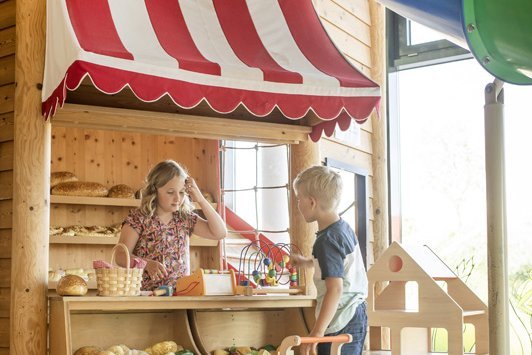 Im Innenbereich lädt Hamsterhausen mit einer Rutsche, einem Kaufmannsladen, einer gut ausgestatteten Mal- und Bastelstation sowie einer Kuschelecke in luftigen Höhen zum Spielen ein.